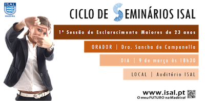 A Associação de Estudantes do ISAL, em parceria com a Direção Regional da Juventude e Desporto e o Polo de Emprego da AEISAL, vem por este meio convidar para o Workshop de Empregabilidade Jovem que se realizará no dia 6 de março, pelas 19h, no Auditório do ISAL, na Rua do Comboio, n.º 5. A entrada é LIVRE.